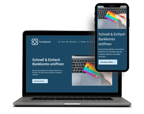 Eine Responsive Website für eine Bank die sich auf Familien spezialisiert hat und einen einfachen Prozess bietet ein Bankkonto für Familien zu eröffnen.