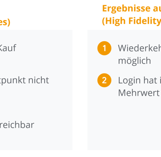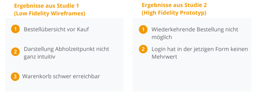 Entwicklung und Test eines High-Fidelity-Prototyps, Implementierung von Verbesserungen wie Schnellcheckout und wiederkehrenden Bestellungen.